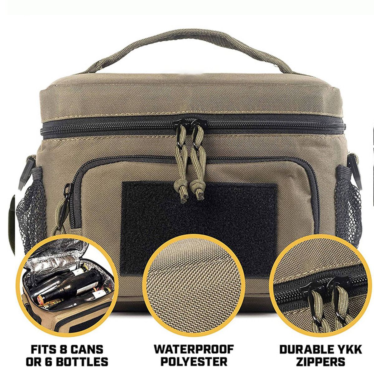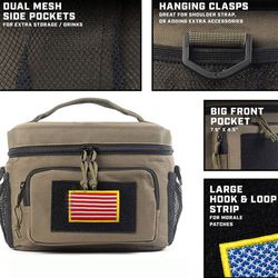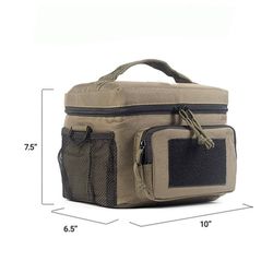 Designed for your comfort and ease of use, our lunch bag holds 2-3 adult-sized lunch boxes, 6 beer bottles or 8 soda cans, with a front pocket for utensils and accessories. Measures 10 x 6.5 x 7.5 inches. Our lunch bags are made from military-grade materials for high durability and water resistance, and the bags come with 8mm thick foam insulation that is tested and engineered to maintain the temperature of the food they contain - keeping it hot and cold all day long without leaking.